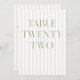 This elegant table number features a soft beige striped background with refined sage green serif typography and subtle script accents. Designed for garden weddings, refined receptions, and timeless outdoor celebrations.