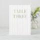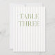 This elegant table number features a soft beige striped background with refined sage green serif typography and subtle script accents. Designed for garden weddings, refined receptions, and timeless outdoor celebrations.