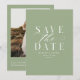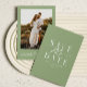 This classic save the date design features a sage green and white color scheme and a modern QR code option to deliver your upcoming wedding information. This design is fully customizable with your text and URL for the QR code.
