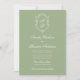 Classic Sage Green & White Monogram Crest Wedding Invitation