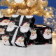 How excited would your kids be on Christmas morning to see packages with this Santa Claus and their name written all over the gift? Snowflakes are scattered about on the black background.