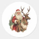 Classic Santa Claus Riding a Reindeer Christmas Classic Round Sticker