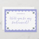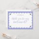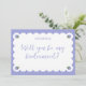 Ask your girls in style with this romantic bridesmaid proposal card, featuring soft periwinkle tones, elegant scalloped edges, and delicate hydrangea illustrations in each corner. The handwritten script question paired with a customizable name creates a refined yet personal look—perfect for spring and summer weddings with a garden, floral, coastal, or vintage theme. Thoughtful and on-trend, this card adds a sweet touch to your bridal party proposal.
