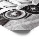 This is a classic vintage poster of a Vintage Italian scooter in France, a classic black and white scooter, an Italian retro design. The scooter is photographed in Paris, France