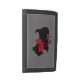 A simple nylon wallet that seems very durable. The design on front (Reiki) is very special. The red color of the wallet is attractive. Very satisfied with the print.