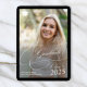 Elegant chic calligraphy script high school college university simple stylish graduation announcement with 2 custom photos and text template.