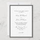 Elegant wedding invitation with classic script and plain text. General introduction: the pleasure of your company is requested at the wedding of. Black text on a white background within a dark grey border. The back is grey.