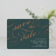 Elegant wedding save the date cards in rich forest green feature "save the date" in luxe rose gold foil script lettering for a bold and unforgettable look. Personalize with your wedding details in classic white lettering, and add additional information to the back.