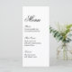 Present your wedding meal with timeless elegance using this classic wedding menu card design. Featuring a graceful script “Menu” header paired with refined typography, this minimalist layout creates a sophisticated presentation that complements formal and romantic wedding décor.