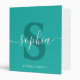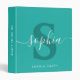 Classic Sea Green Monogram Script Name Initials 3 Ring Binder