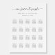 Our reception seating chart table sign features handwritten calligraphy and classic typography on a foam board backing for a minimal yet elegant way to have guests find their table at your event.