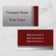 A silver metal look card with a simple gray border artistic design. Easily add your company name and your name or other text on the front of the card. Shown on the front is red text and on the back is gray text and you can easily change the font style and color as well as the red background. On the back is a smooth stainless steel metal look border on a matching red background which is perfect for adding more information. Personalize with your own text easily both on the front and on the back. A simple, but classic professional looking promotional card great for any business and occupation.