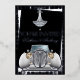 WEDDING SILVER | Real Foil Front - faux metallic back- Classic and Sophisticated features the front end of a classic white limousine - , Black, White OR Rose Gold in Art Deco Style of the roaring 20's, Roaring Twenties Gatsby Style Vintage and Elegant, with a 1920's "Great Gatsby" theme. A black background highlights the intricate geometric Art Deco style design and lettering . Portions of the front design are real foil with part of the design showing through in the design colors, The reverse is NOT foil but matching colors to the front. The front has real foil accents, allowing the design to show highlighted in foil. We chose Silver for this invitation because we have created the back in a coordinating color - we also have pre coordinated yellow gold and rose gold.