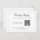 Simple and elegant, this wedding RSVP card has a thin silver line border on front and back and text that may be edited as you wish. It uses modern QR Code technology to allow you to provide a link to your wedding website for your guests to post their responses.
