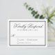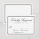 Timeless and elegant, this tasteful wedding RSVP card design features the classic color palette of charcoal gray lettering over a neutral white background. The type face is crisp and classic with a lovely layout. A matching double line offset border frames your text to finish the design with style. Personalize the text template with your required response date.