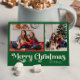 Classic Simple Green Merry Christmas Two Photo Holiday Postcard