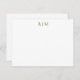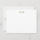 Classic Simple Two Monogram Elegant Modern Green White Professional Note Card