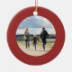 A classic red herringbone tweed frames a single photo on this simple personalized Christmas ornament. The back has a matching red holiday tweed effect and has room for custom text. This photo ornament makes a great grandparent gift and is also a great way to remember a special occasion like a wedding, baby, new home, vacation and more. Celebrate the special memories with this classic Christmas ornament.
