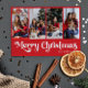 Classic Simple Red Merry Christmas Four Photo Holiday Card