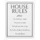 Display your 5 most important house rules to serve as visual reminders to your guests. Easily customize the template with your information. Font type, size, and color can all be changed to fit your needs. The background color can also be customized to match your decor.