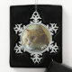 Pewter snowflake, classic photo ornament keepsake for the Christmas tree. Use templates to upload a picture of the family pet, person, or anyone, then add the year date in white.