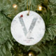 Classic Snowy Christmas Winter Scene Monogram V Ceramic Ornament