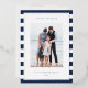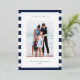 Share holiday greetings with these Hanukkah photo cards featuring your favorite photo set on a background of light blue and white stripes with luxe silver foil trim. An editable message area lets you customize your Chanukah or holiday greeting. Add your family name or names beneath along with the year.
