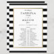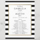 This elegant wedding schedule timeline features an elegant faux gold foil border framing your wedding details set in chic typography on a classic black and white striped background. Designed by Thisisnotme©