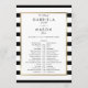 This elegant wedding schedule timeline features an elegant faux gold foil border framing your wedding details set in chic typography on a classic black and white striped background. Designed by Thisisnotme©