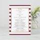 This elegant wedding schedule-timeline features an chic faux gold foil border framing your wedding details set in modern typography on a classic burgundy and white striped background. Designed by Thisisnotme©