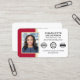 Make a professional impression with this classic business card design. Easily personalize it with your photo, name, job title, address, and contact details. Space is provided for your logo and two accreditation logos. All the text and images can be customized or deleted to suit your business needs. Printed colors: red, gold, black and white.