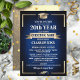 Great class reunion invitations in your school colors of blue and gold, that you personalize with all your celebration details for your big reunion event. This design features a rich background with gold corner accents and a gold graduation cap & tassle bordering the event details. Your school name is prominently featured on a gold banner right in the center.