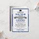 Great class reunion invitations in your school colors of blue and silver, that you personalize with all your celebration details for your big reunion event. This design features a light background with darker text, gold corner accents and a graduation cap & tassle bordering the event details. Your school name is prominently featured on a gold banner right in the center.