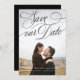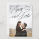 This classic and traditional style save the date with one photo placeholder card is ideal for couples who love a traditional aesthetic. The front comes with the words "save our date" written in a romantic, classic, swooping calligraphy typeface. The background color on the back of the cardcan be changed to any color you wish.