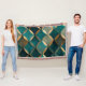 classic teal gold geometric luxurious elegant throw blanket