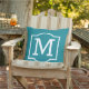 Classic Teal White Bracket Monogram Outdoor Pillow
