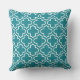 Classic Teal White Quatrefoil Trellis Outdoor Pillow