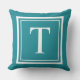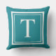 Classic Teal White Square Frame Monogram Outdoor Pillow