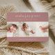 Elegant and classic birth announcement features three photos aligned side by side on a dusty rose mauve pink background. Personalize with baby's name, birth stats, and your family signature in crisp white lettering.