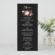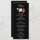 This classic tropical black burgundy dinner menu card is perfect for a rustic wedding. The artistic bordo marsala design features watercolor, green, pink, burgundy and blush roses assorted with greenery neatly arranged in a graceful and radiant flower bouquet.
