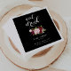 This classic tropical eat drink we're married wedding napkins are perfect for a rustic wedding. The artistic bordo marsala design features watercolor, green, pink, burgundy and blush roses assorted with greenery neatly arranged in a graceful and radiant flower bouquet. RSVP cards are sold separately.