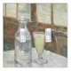 Still Life with Absinthe (1887) is a sophisticated masterpiece created by Vincent van Gogh during his influential Paris years. This quiet, atmospheric painting captures a glass of pale green absinthe and a clear water carafe on a cafe table, set against a window overlooking a Parisian street. Influenced by Impressionism, Van Gogh utilizes a lighter, airier palette and delicate brushwork compared to his earlier somber Dutch works. This iconic piece perfectly embodies the bohemian cafe culture of 19th-century Montmartre, offering a timeless blend of classic fine art and vintage French elegance, ideal for sophisticated home decor and bar accessories.