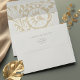 This elegant wedding envelope is the perfect complement to a Victorian-themed invitation suite. The exterior is a vision of understated elegance, with the names presented in a beautiful gold script that exudes sophistication. As the envelope unfolds, the interior reveals a stunning Victorian floral motif in shades of gold and cream, mirroring the detailed design of the invitation itself. The envelope design subtly includes the initials of the couple, nestled within the artwork, signifying the coming together of two lives. This envelope promises an experience of timeless romance and exquisite taste for your treasured wedding correspondence.