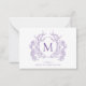 Classic Violet Floral Crest Monogram Note Card