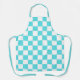 Great color and even though I ordered the kid size, it covers well enough to use during the holidays. I am not a big woman and prefer a shorter apron. I stand 5"6" and the length of the garment goes to mid-thigh. The tie straps fit well at my waist and even though there is no neck strap adjustment, the opening is plenty big enough. I am happy with the size and fit. I am sharing my apron with my 10 year old grandson, too! The color is vibrant and looks good, as shown on the website. The stitching looks strong and reinforced. Photographed is front side and back side of the apron, reinforced straps and coloring. My phone camera may not be the best at showing the details.