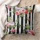 Classic Watercolor Floral Black Stripe Throw Pillow