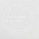 An elegant couple's design featuring you custom return address or contact details in circular typography, with two line borders and your names aligned to the left on the inside of the frame. Simply type your text into the template boxes provided to make your own embosser! Feel free to message me with any questions.