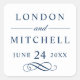 Finish your wedding favors with timeless elegance using this classic white and navy monogram square sticker. The couple's names and wedding date are displayed in refined navy typography with decorative scroll accents against a clean white background. A versatile complement to the navy version or a standalone accent for favor bags, gift boxes, or envelope seals. All text is fully customizable. Coordinates with the Classic Elegant Navy Blue wedding suite.