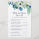 This classic white flowers bride and groom trivia game is perfect for a spring wedding shower. The elegant floral design features soft ivory and white roses, peonies, and chrysanthemum with touches of periwinkle blue watercolor flowers and green foliage. Personalize the back of the card with the name of the bride and the shower date.
