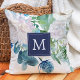 Classic White Flowers Monogrammed Throw Pillow